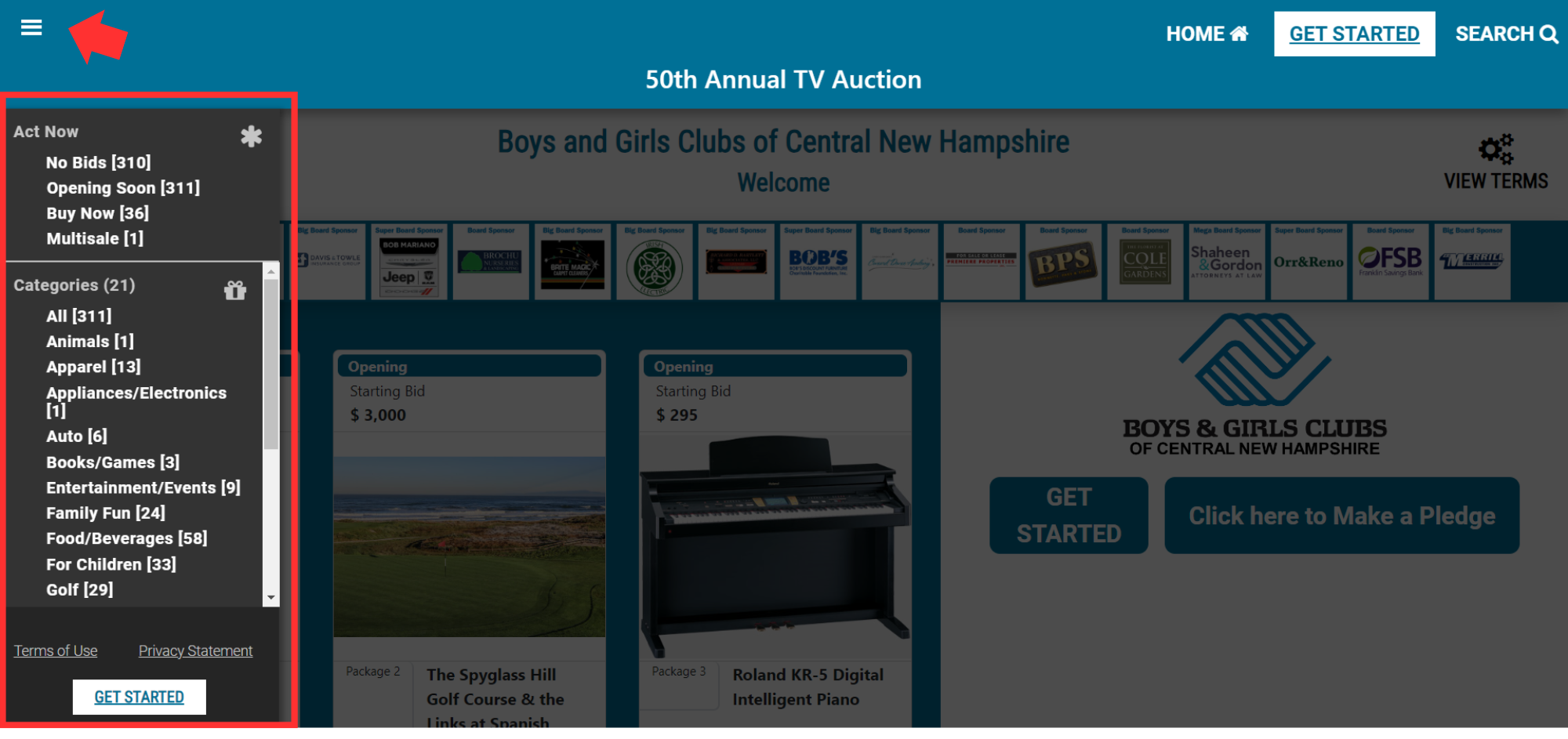 - Use the ≡ to open the menu for Bids, Favorites, and Categories.