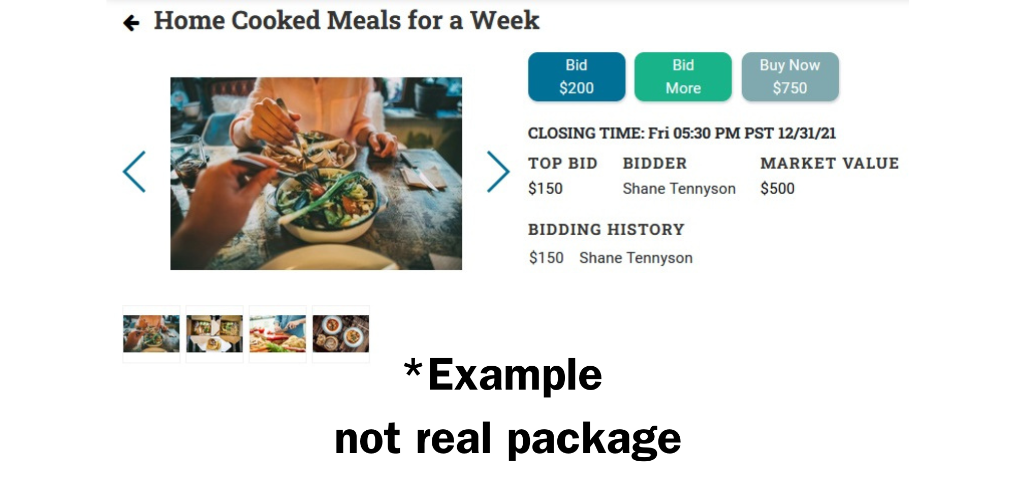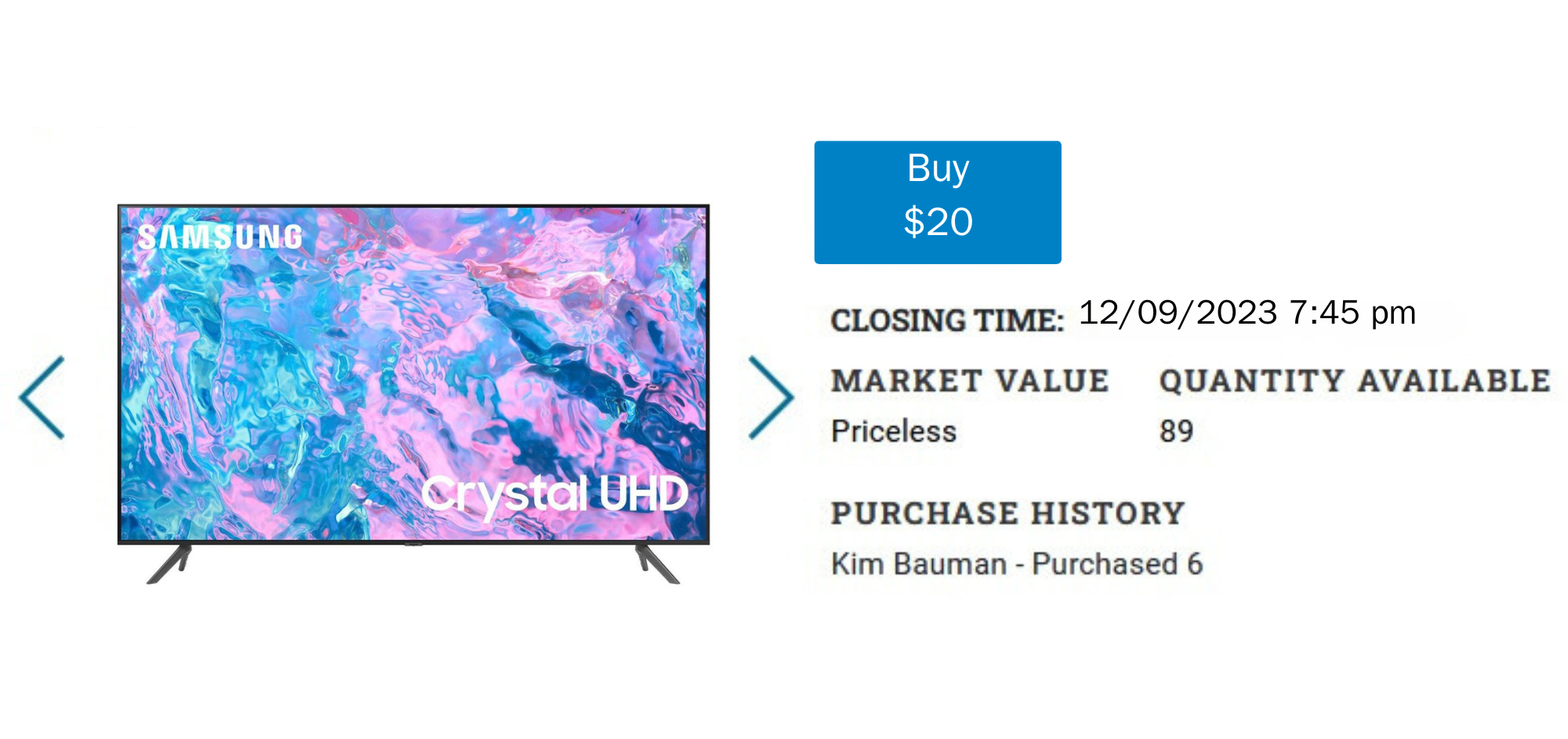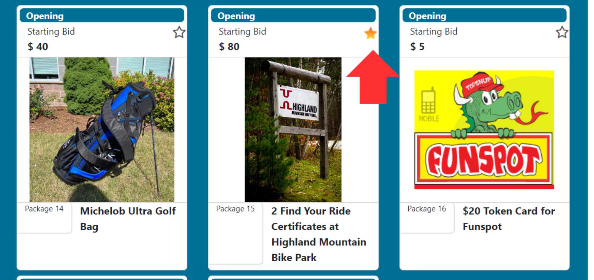 - Multi-Sale Packages like raffle tickets or sign-up parties are sold at a set price rather than being bid on. Click Buy and then select desired quantity.
