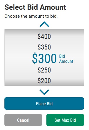 - Bid More - Place a Max Bid. The system will bid in your favor until you are outbid or the